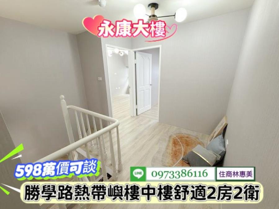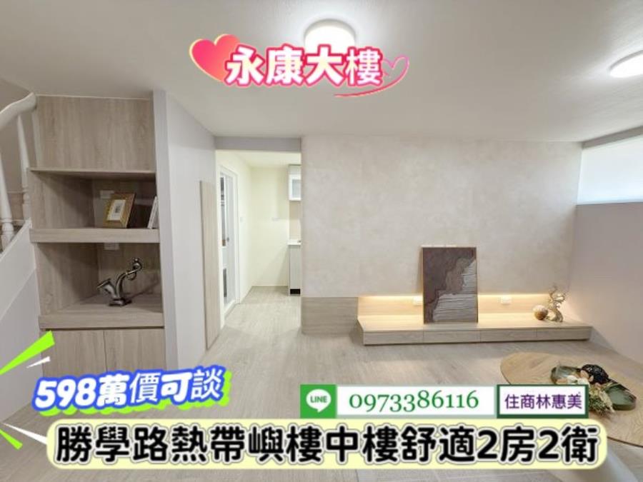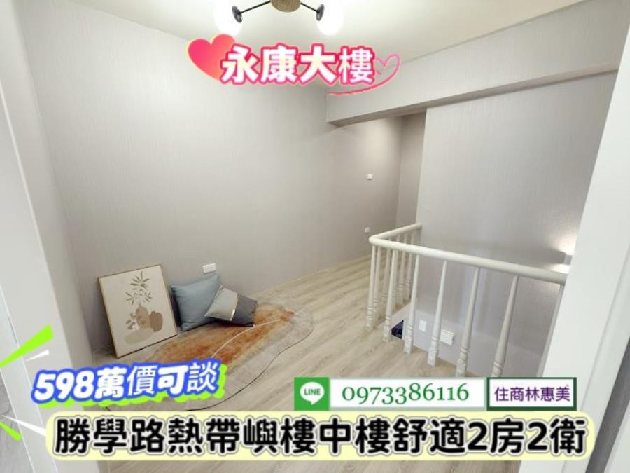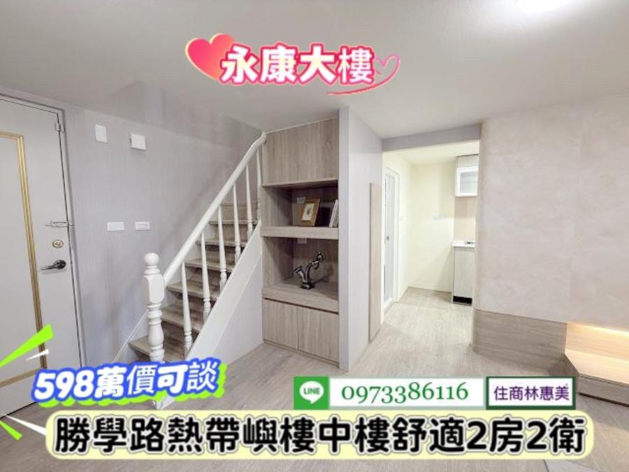 #永康區勝學路熱帶嶼樓中樓漂亮2房/售598萬.價可談/林惠美0973386116
