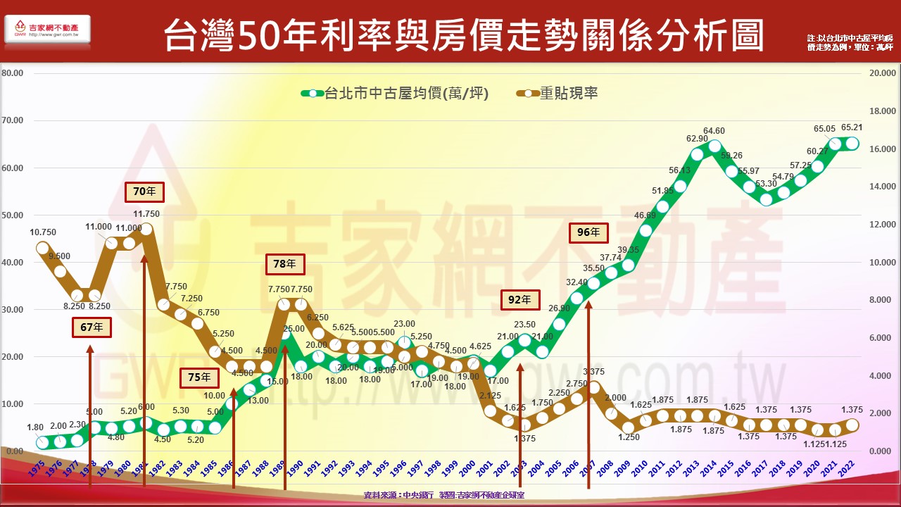 李同榮進一步分析五十年來重大升息三次的經濟成長環境與房價表現的相互關係: