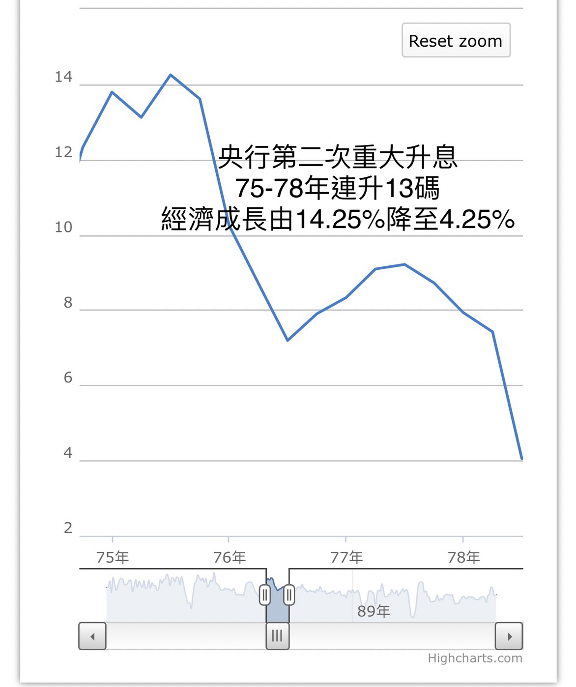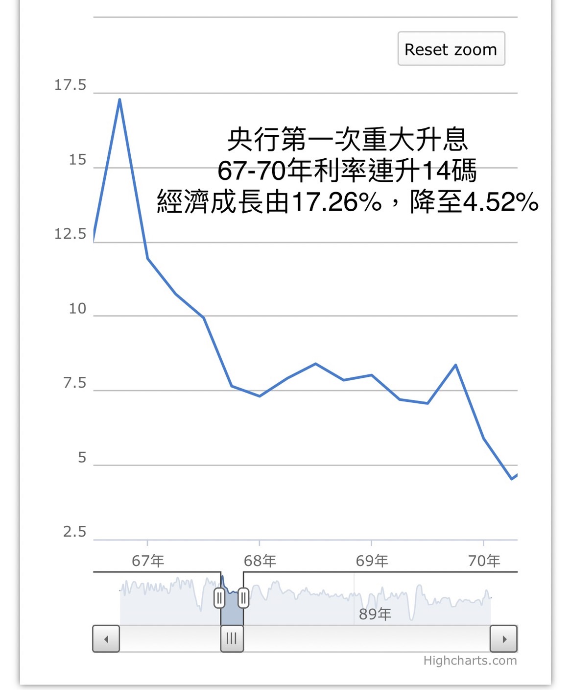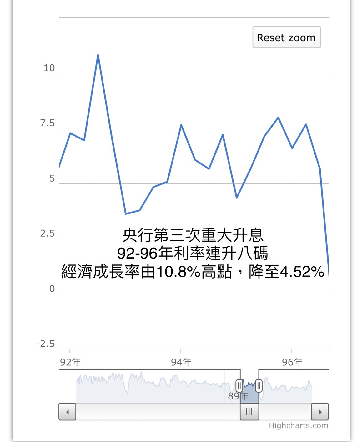 (二)中期影響經濟衰退:利率回升,往往是經濟衰退的前兆,升幅越高,對經濟成長越不利。