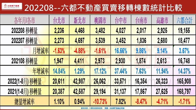 今年成屋市場雖經七大利空逆襲,但交易量1-8月總數,年縮只有1.71%,而房價反而不跌且小漲。預期9月開始,成屋交易量會早於預售市場逐漸回溫,若沒重大利空,溫和升息對成屋市場影響也非常有限,全年交易量會跌破眼鏡,將不如市場的悲觀預期,不但不減,反而會小增,這表示資金充裕與剛性需求的強勁,才能力抗七大利空的逆襲。