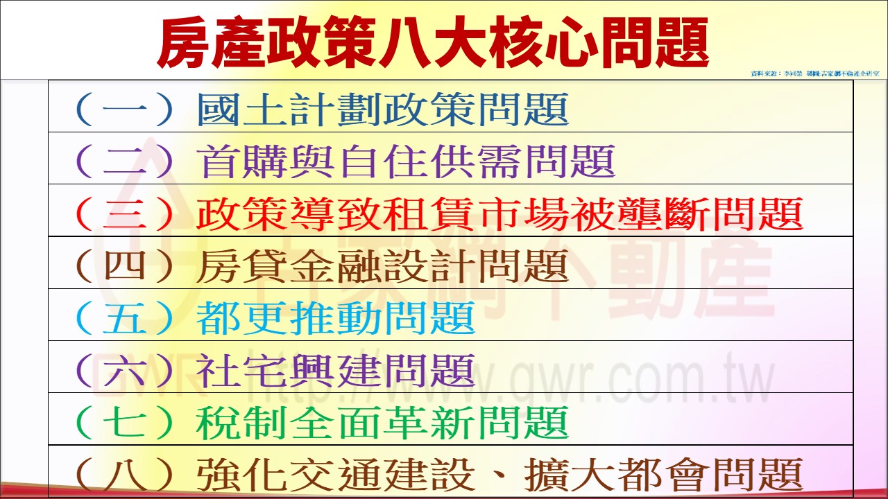 房市趨勢專家 李同榮直批:高房價論「果」不論「因」,央行理事們內行人講外行話,他認為高房價核心問題包括土地與住宅供需、租賃市場被壟斷、房貸金融設計、都更推動、社宅興建、稅制全面革新、擴大都會、等八大問題。