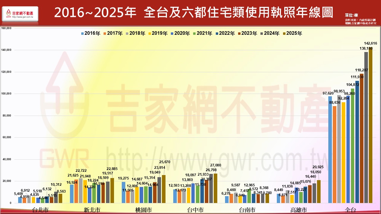 3/交屋潮供給遞增,市場多殺多浮現,房價全面鬆動:代表供給量指標的全台完工使照核發量近兩年逐年攀升,2025高達14萬2616棟數量,在2025年之前餘屋大部分銷售狀況良好,餘屋不多,但2025以後交屋潮的餘屋量將遞增,庫存量增壓力,將產生投資客拋售的多殺多現象,房價會在2026明顯鬆動。