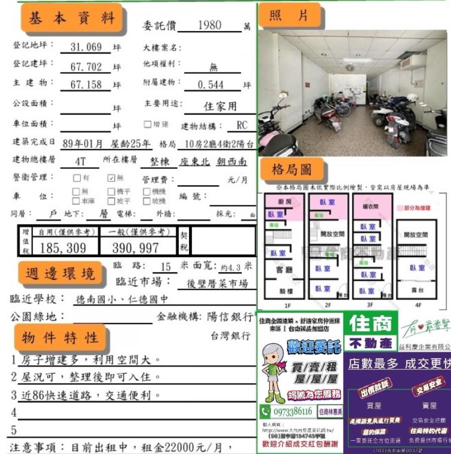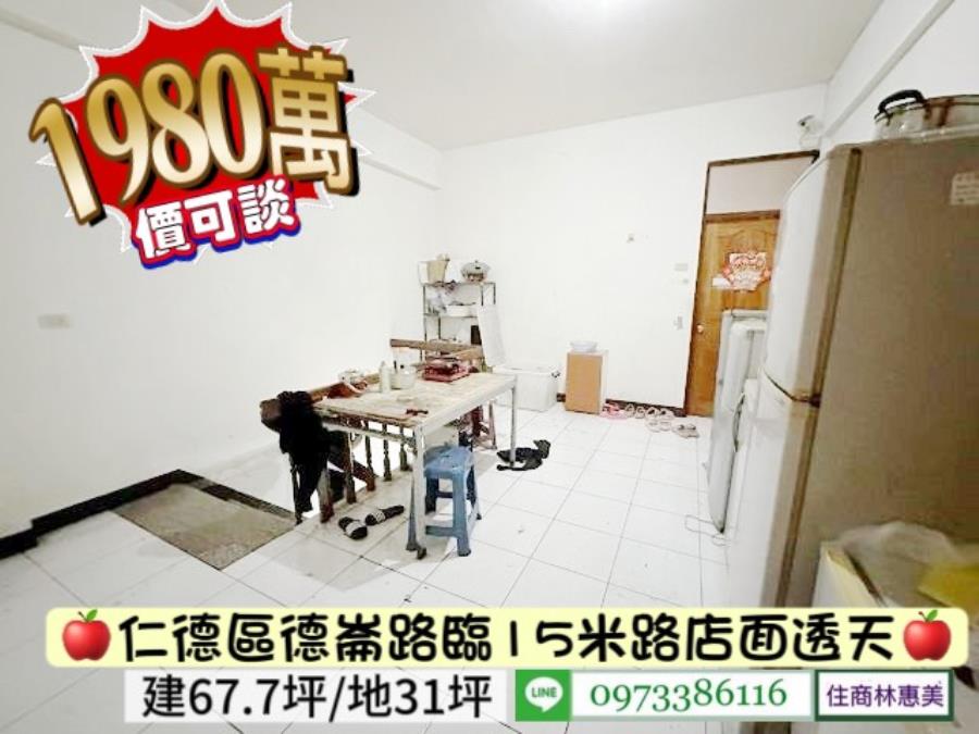 #仁德區德崙路臨15米路店面透天/售1980萬價可談/林惠美0973386116