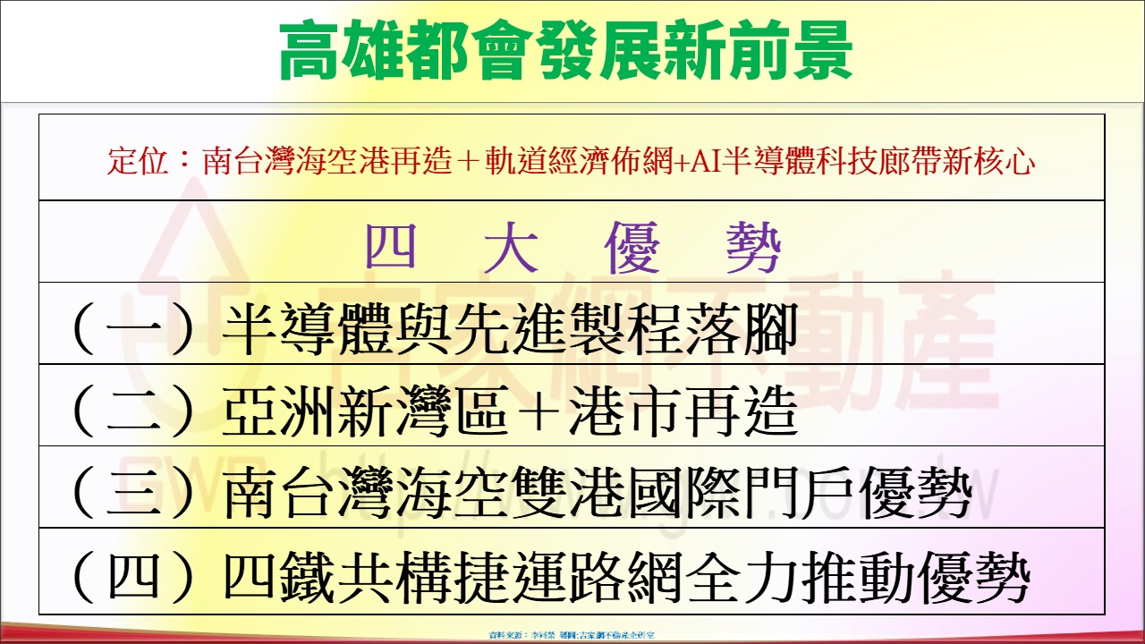 總結高雄房市的特色是「基期低、轉型強、政策資源集中」,在高科技產業進駐與加持下,將是未來南方天龍國之都會巨星。